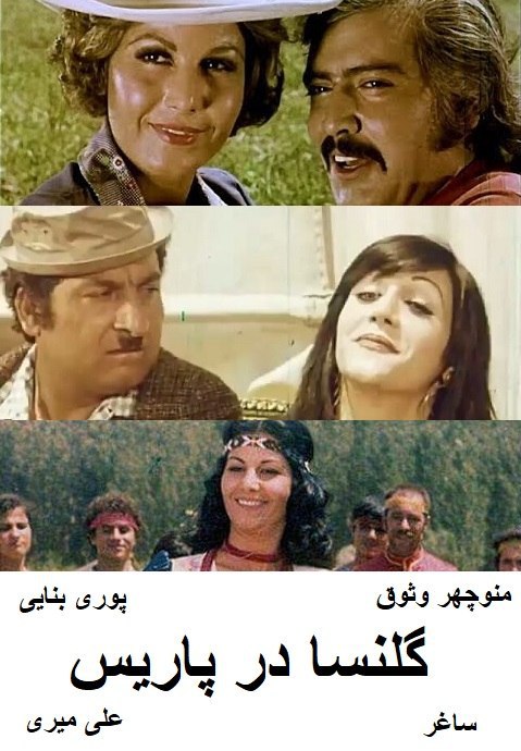 Synopsis: The Glansa tribe (Puri Banaei) has set up camp on the lands of Masoud Khan (Manouchehr Vossoug), a young man who enjoys life. Masoud sends an agent to have the gypsies leave his estate. Glansa sweetly dissuades Masoud from his decision, and in return, he asks Glansa and her friends to attend his party. A competition is held by the advertising manager of “Moulin Moquette” and Glansa wins the lottery. Her prize is a trip to Paris to advertise the company’s products. Glansa, who is interested in Masoud, goes to Paris with Nobar (Seyed Ali Miri), the company’s doorman, when she learns that Masoud is leaving for Europe, and…